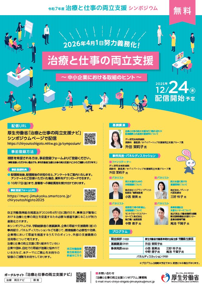 令和7年度「治療と仕事の両立支援シンポジウム」のご案内【厚生労働省鹿児島労働局】