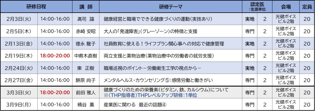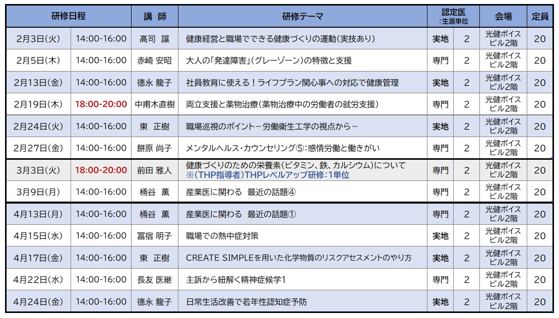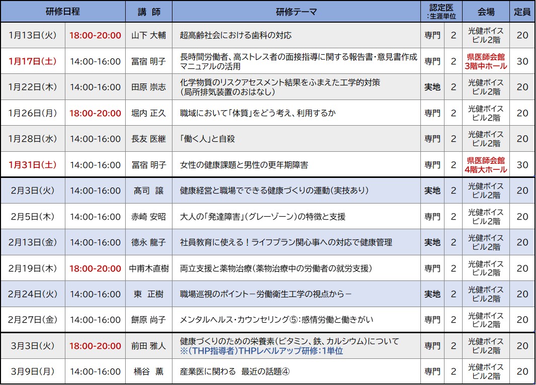 ※各研修の前日(土日祝日を除く)午前中までにお申込みください